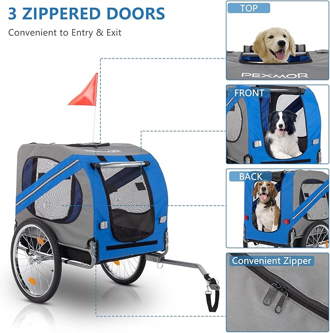 • 【3 CONVENIENT ENTRANCES】With 3 zippered doors on the front, back, and top.So your pet can stick their head out of the trailer and enjoy the journey. The surrounding mesh window provides good ventilation and keep coo.Included a D-ring can keep pets secure inside the pet carrier