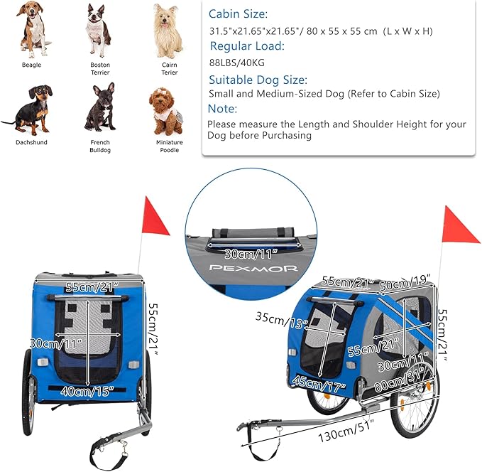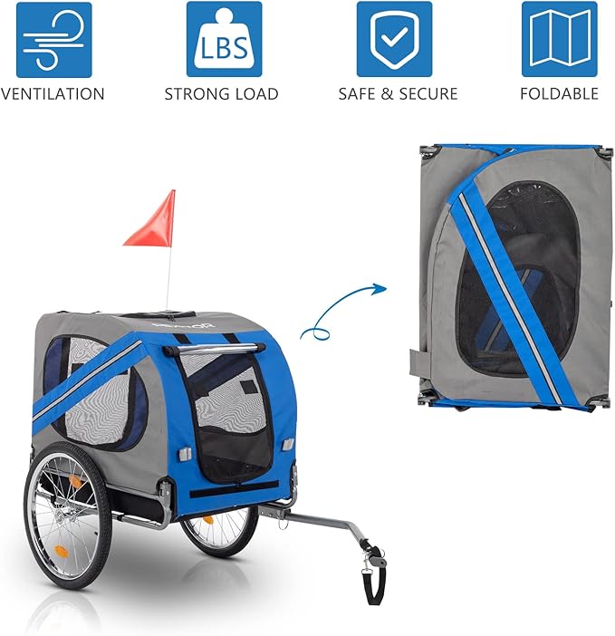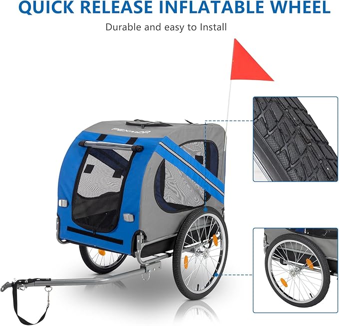 PEXMOR Dog Bike Trailer, Folding Pet Dog Trailer Cart for Bicycle, Bike Cargo Wagon Carrier w/Universal Hitch & 20" Wheel
