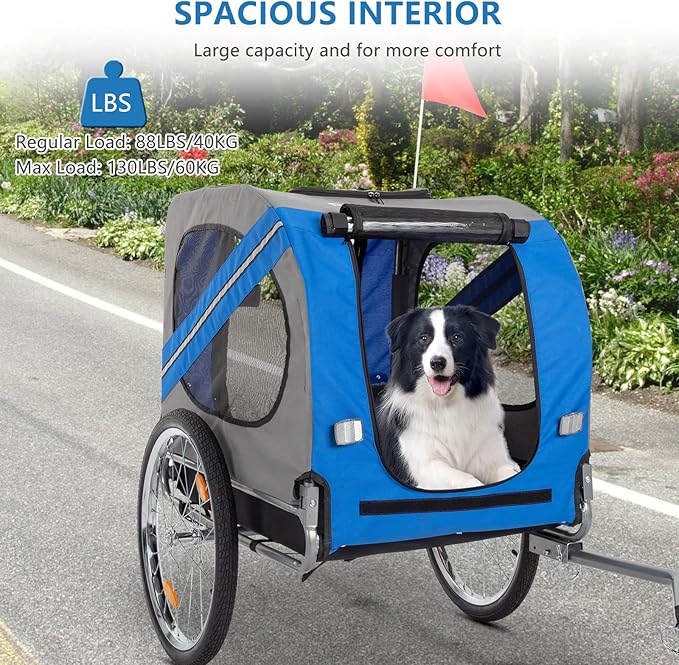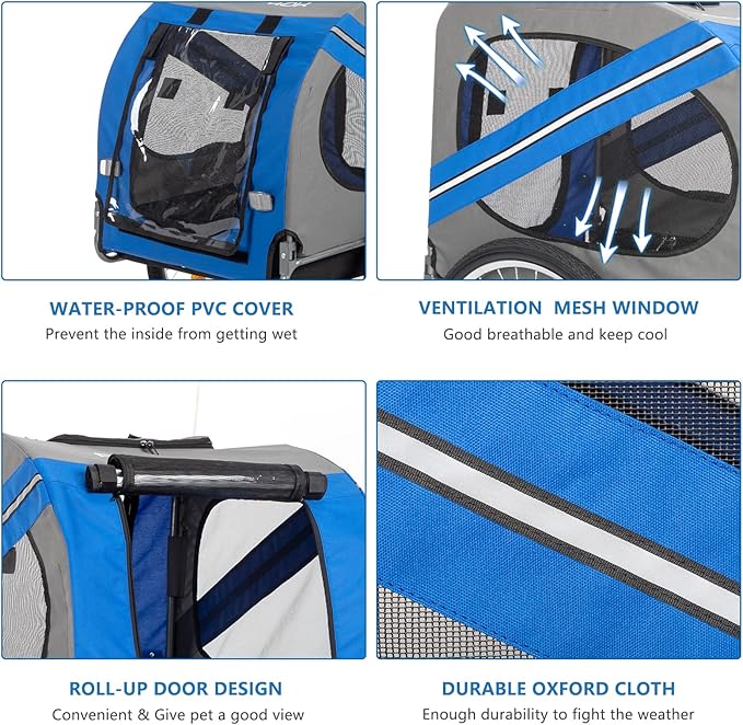 • 【WATERPROOF & BIG SMOOTH WHEELS】Wtih water-proof pvc cover can prevent the inside from getting wet.Convenient roll-up door design can give pet a good view. 20" extra big air-filled wheels for a smooth ride.The wheels with reflectors to increase your safety when riding in the dark