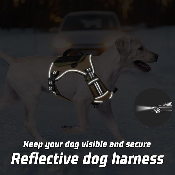 - Reflective Dog Harness: Ultra-reflective strips on the harness provide added safety during low-light conditions or nighttime walks, making your dog easier to notice by others. Whether we're training, hunting, or just going for a walk, it's the companion