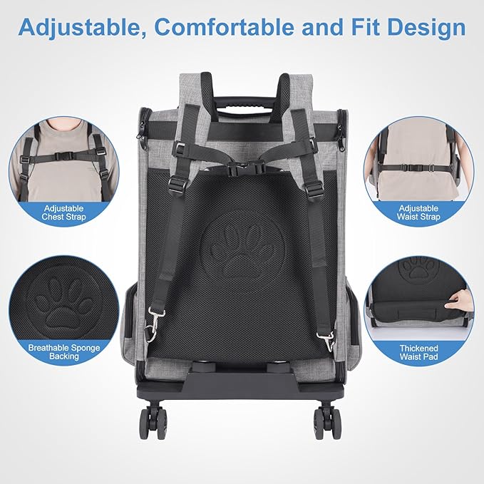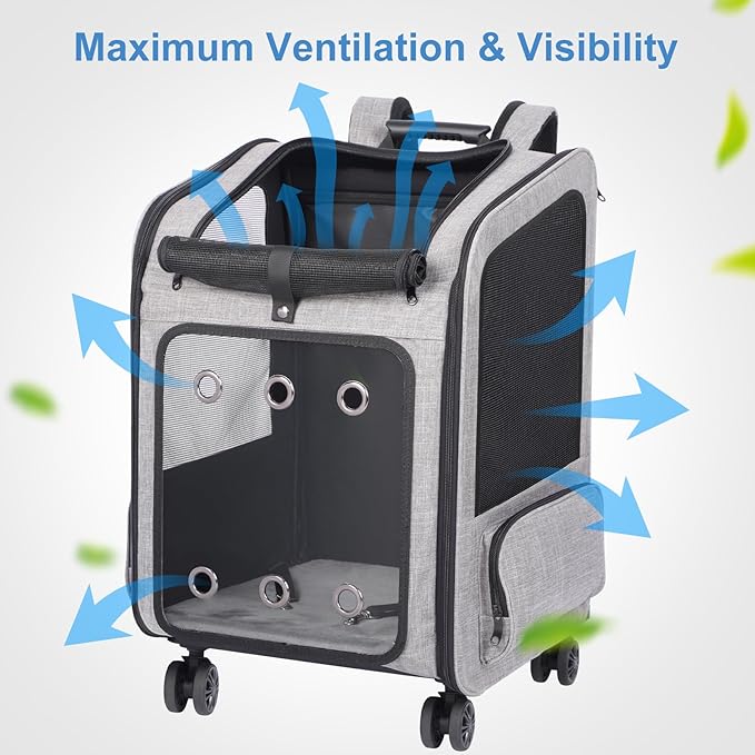Extra Large Pet Carrier Backpack with Wheels Cats Under 30 Lbs, for Dogs Puppies Rabbits Other Animals Under 25 Lbs, Great for Travel/Hiking/Outdoor Use
