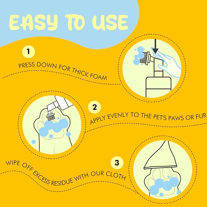 - CLEAN EFFICIENTLY: Our No-Rinse Foaming Paw Cleaner can clean pet's feet easily, without using water or wipes. Effectively clean surface dirt and debris. Comes with an absorbent towel that dries immediately after use without taking time to let it air dry
