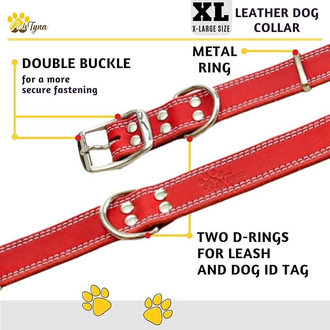 - TOP-RATED LEATHER DOG COLLAR - comfortable and featuring secure fastening with double buckle, two d-rings, and high-quality leather, the Adityna leather collar is a great option for all dogs including the ones with sensitive skin. Get only premium products for your beloved friend.