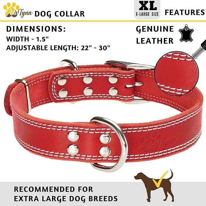 Extra-Large Red Leather Dog Collar - Comfortable and Secure for Giant Breeds