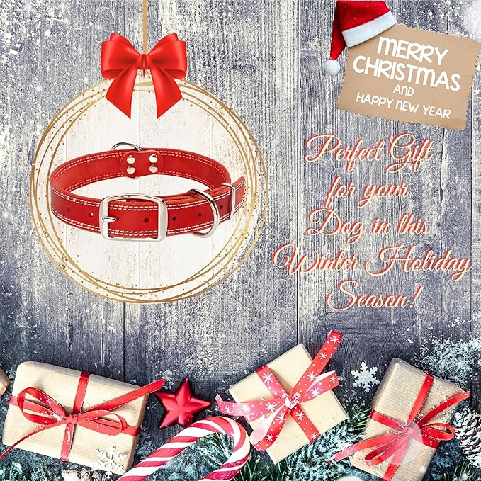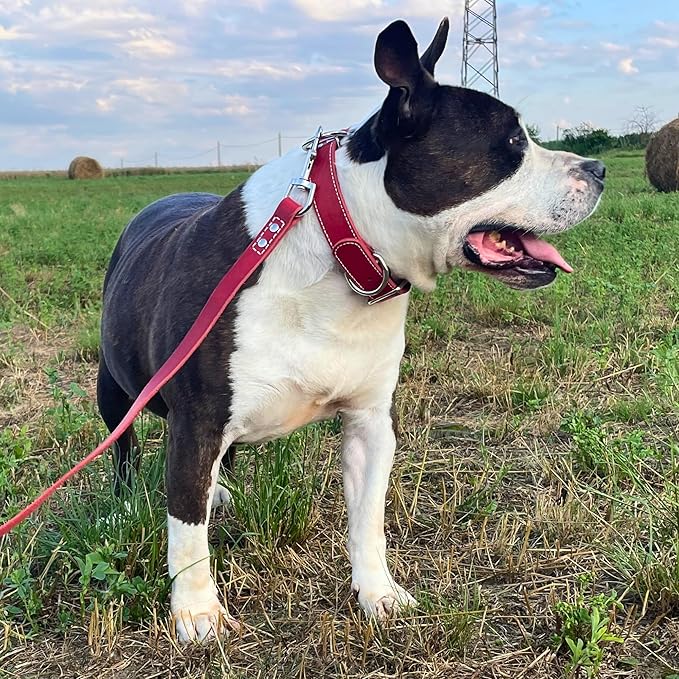 ADITYNA Heavy Duty Red Leather Dog Collar for Large Dogs - Soft and Strong Leather Dog Collar for Walking and Training