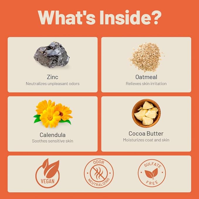 - Soothes Sensitive and Itchy Skin: Our dog shampoo bar contains oatmeal, calendula, and chamomile to soothe and moisturize your dog's skin, making it ideal for dogs with sensitive or dry skin.