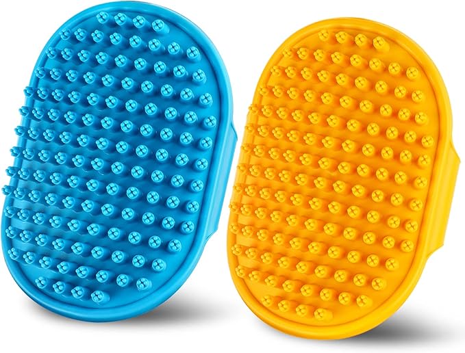 - 【EXCELLENT DESIGN】: The dog bathing brush has an adjustable loop handle for a comfortable grip that fits perfectly in the palm of your hand. With a product size of 9.8*4.8*0.7 and a weight of 85 g, it is perfect for controlling during a long pet grooming session. This makes it a favorite among dog shampoo brushes