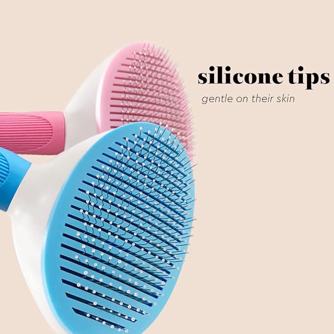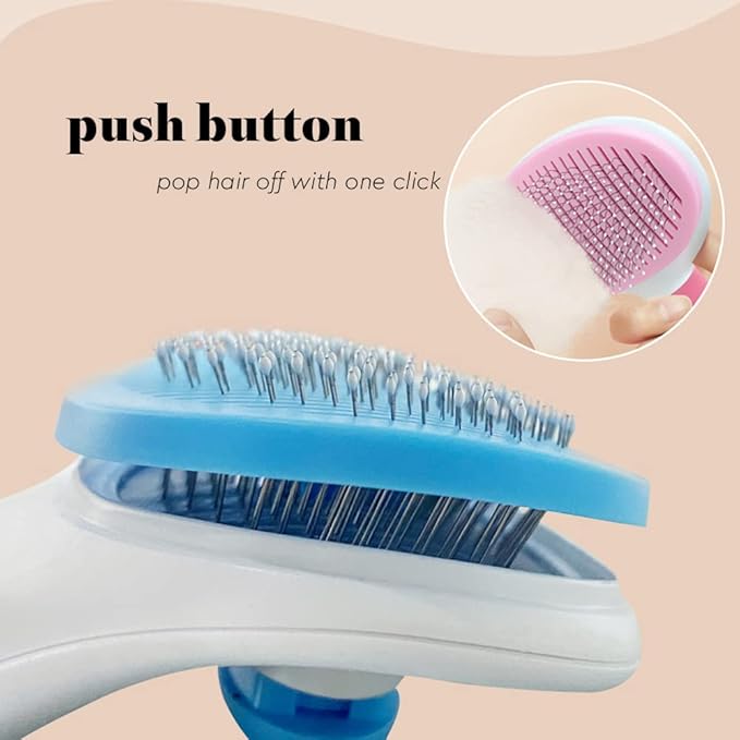 Self Cleaning Bristle Slicker Brush for Dogs Cats, Pets Easy Grooming Brush, Deshedding Massaging Tool, Gray