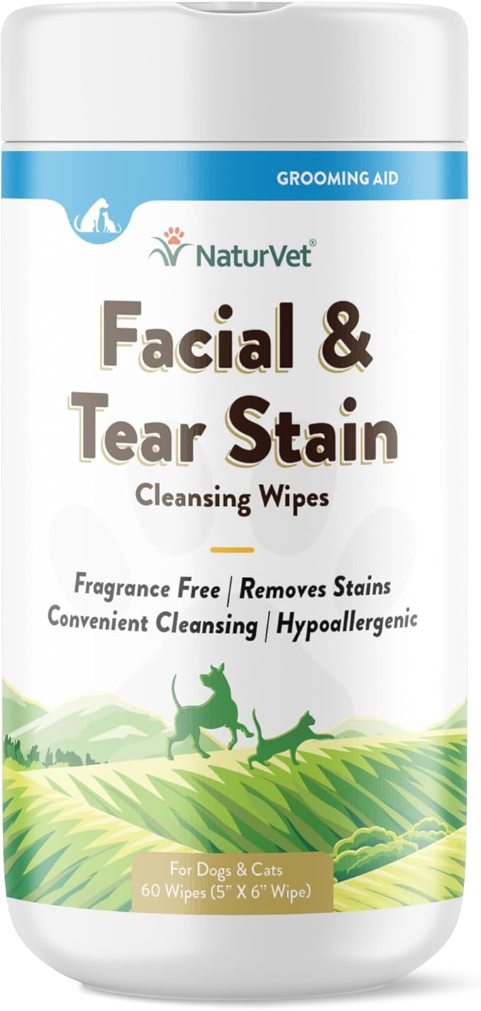 NaturVet Facial & Tear Stain Cleansing Wipes for Dogs & Cats 60 Count