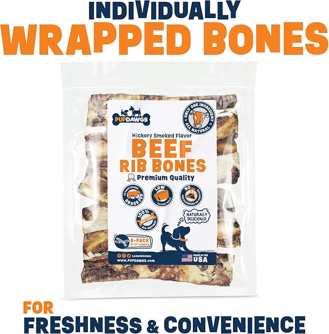 - Individually Wrapped for Freshness and Convenience: Each of our 8-10” Beef Rib Bones treats come individually wrapped, ensuring maximum freshness until your pet is ready to enjoy it. This convenient packaging also makes it easy to grab a treat for a walk, a trip to the park, or an on-the-go reward.
