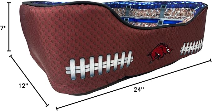 NCAA Arkansas Razorbacks Stadium Dog Bed, Pet Pillow Bed for Dogs, Sporty Football Dog Bed and Lounge Cushion