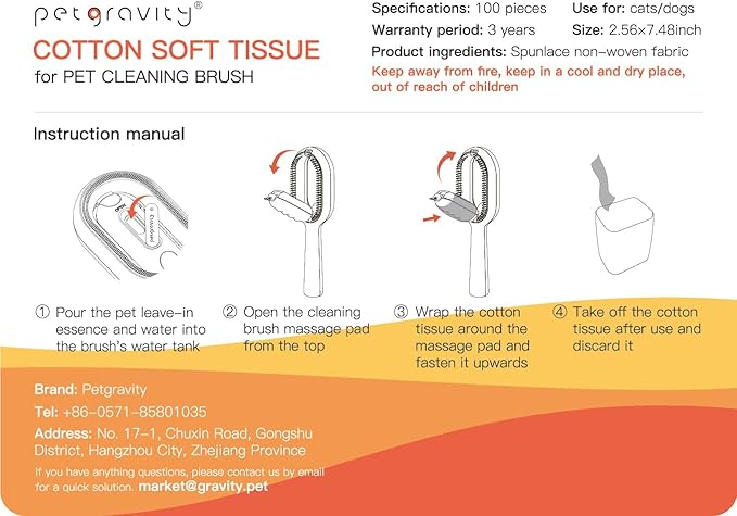 - SATISFACTION GUARANTEE - This pet cotton tissue is recommended for use with petgravity pet cleaning brush (B0C3W58RG6, B0C3W5MXSC). The wipe can be reused on both sides to improve the use rate. We back our products with a 100% satisfaction guarantee, for both you and your pet!