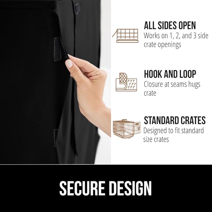 GORILLA GRIP Dog Crate Covers Compatible with Amazon Basics Dog Crates, All Sides Open, Privacy Cover Fits 24" Wire Kennel, Breathable Mesh Windows, Light Reducing Puppy Training Cage Topper, Black
