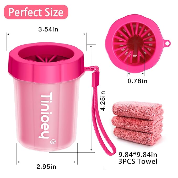 - 【Gift 3 Absorbent towels】 Use Tinioey dog foot washer to clean dog paws, just put the muddy paw into the cup and twist a few turns. Comes with towels for drying puppy paw, Want to free your hands? Just order it