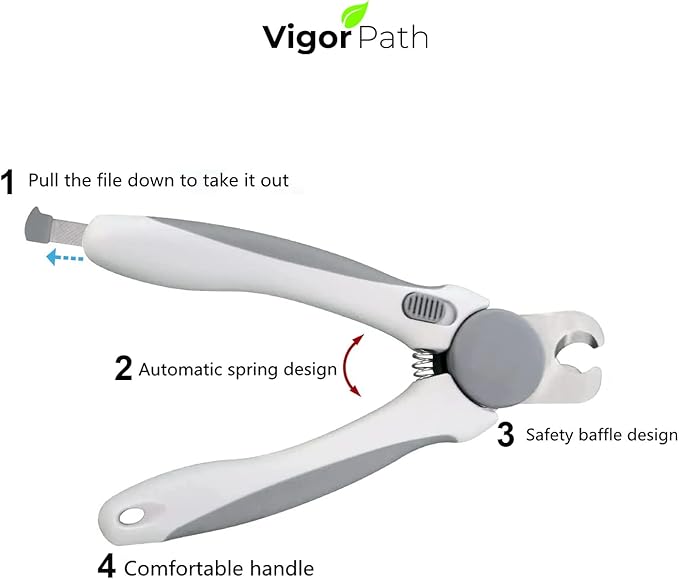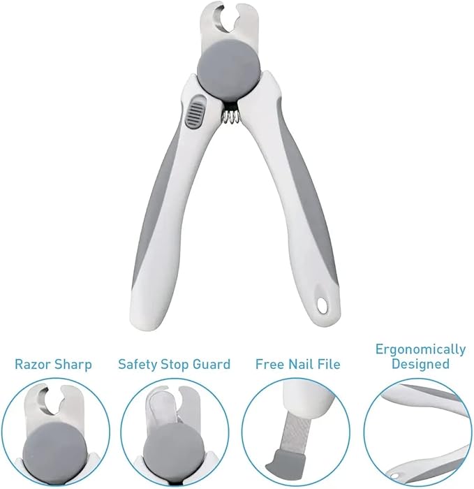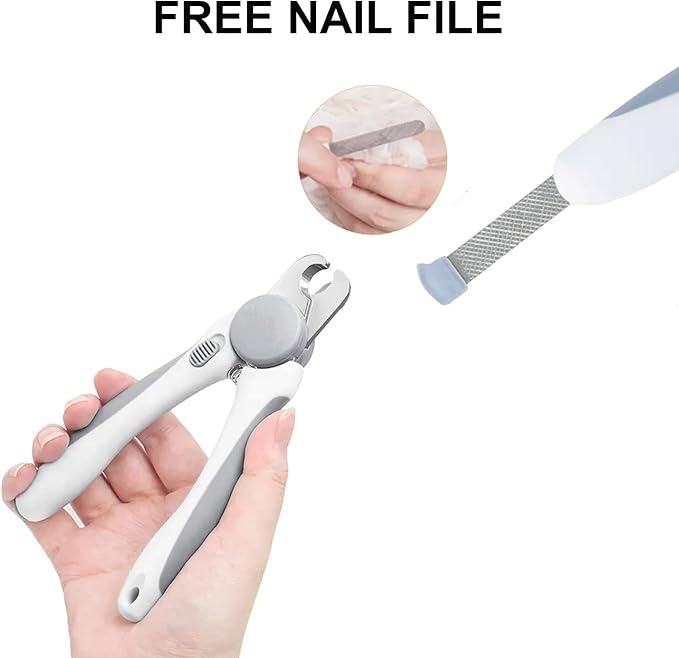 Pet Nail Clipper - Pet Grooming Tool for Nail Clipping and Trimming - Suitable for Dogs and Cats, Equipped with a Safety Guard and Razor Sharp Blade for Precision - plus a Bonus Free Nail File (Gray)