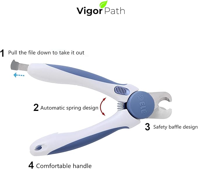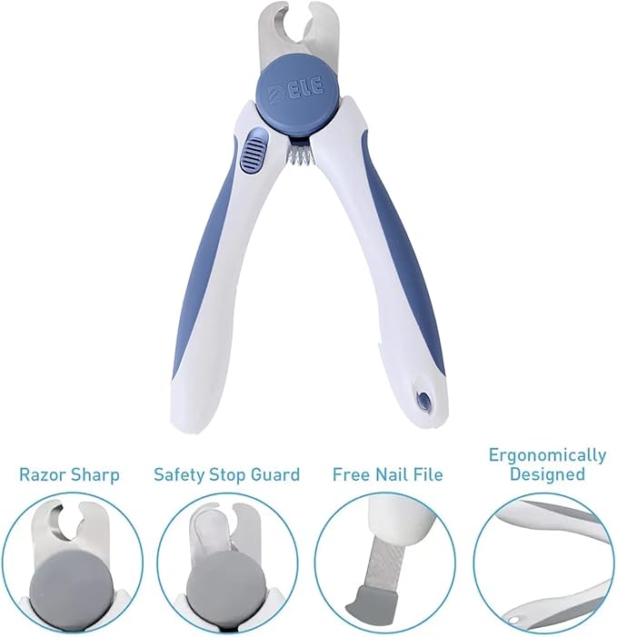 Pet Nail Clipper - Pet Grooming Tool for Nail Clipping and Trimming - Suitable for Dogs and Cats, Equipped with a Safety Guard and Razor Sharp Blade for Precision - plus a Bonus Free Nail File (Blue)
