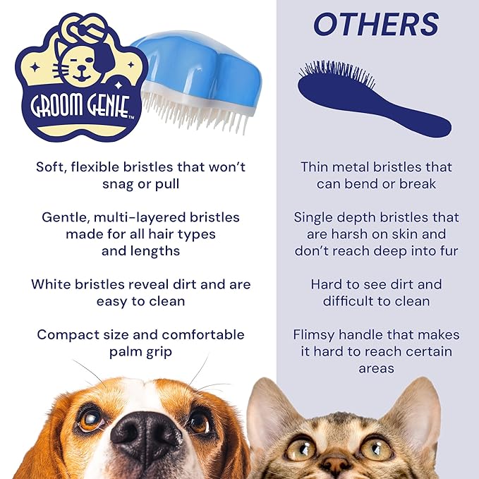 - Each penetrating stroke of the Groom Genie helps to evenly pull natural oils through hair and fur for healthy skin and coat.