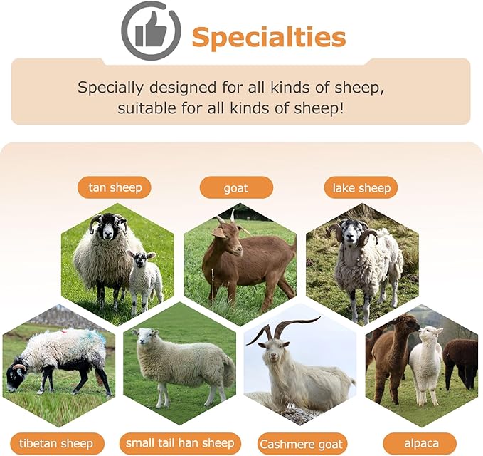 - 【High Strength Refined Carbon Steel Blade】This sheep hair clippers comes with a high quality 13-tooth straight blade made of high strength refined carbon steel to ensure sharpness and durability. Users can precisely adjust the looseness and tightness of the crimping claws through the helical to achieve a smooth and fluid removal of animal hair. Suitable for sheep, goats, alpacas, etc. Because the motor is too powerful, we do not recommend using it to trim the hair of cats and small dogs.