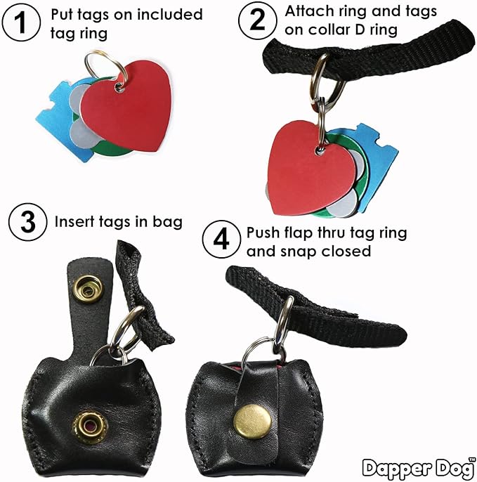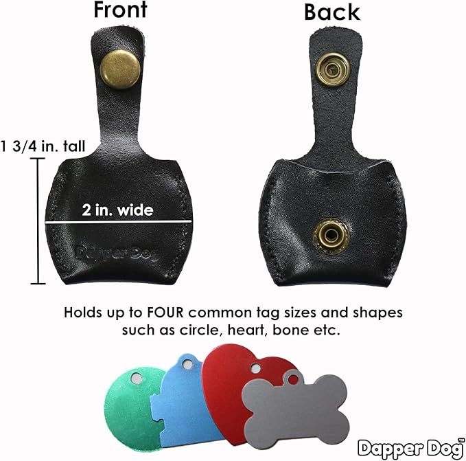 - Holds up to four standard size and shape tags, for example; bone, heart, circle, square. Bag is 2 inches wide and 1 3/4 inch tall. Please measure your tags before purchasing as the bag may not hold all tags.