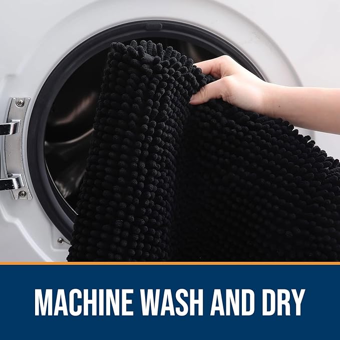 OLANLY Dog Door Mat for Muddy Paws 48x30, Absorbs Moisture and Dirt, Absorbent Non-Slip Washable Mat, Quick Dry Chenille, Mud Mat for Dogs, Entry Indoor Door Mat for Inside Floor, Black