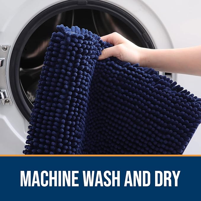 OLANLY Dog Door Mat for Muddy Paws 48x30, Absorbs Moisture and Dirt, Absorbent Non-Slip Washable Mat, Quick Dry Chenille, Mud Mat for Dogs, Entry Indoor Door Mat for Inside Floor, Navy Blue