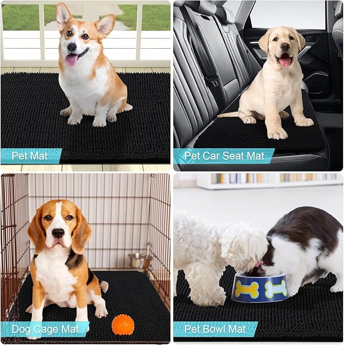 OLANLY Dog Door Mat for Muddy Paws 24x16, Absorbs Moisture and Dirt, Absorbent Non-Slip Washable Mat, Quick Dry Chenille, Mud Mat for Dogs, Entry Indoor Door Mat for Inside Floor, Black