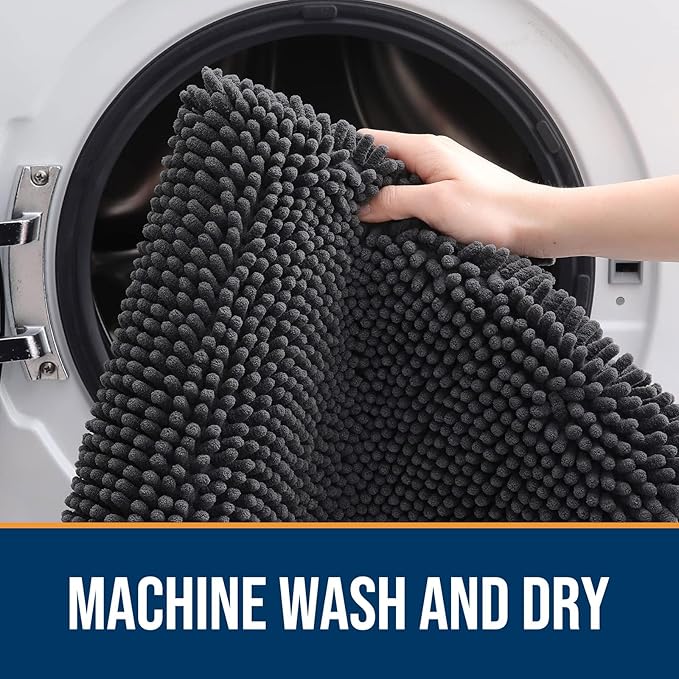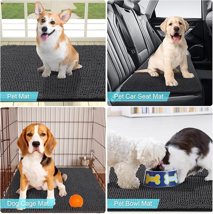 OLANLY Dog Door Mat for Muddy Paws 48x30, Absorbs Moisture and Dirt, Absorbent Non-Slip Washable Mat, Quick Dry Chenille, Mud Mat for Dogs, Entry Indoor Door Mat for Inside Floor, Dark Grey