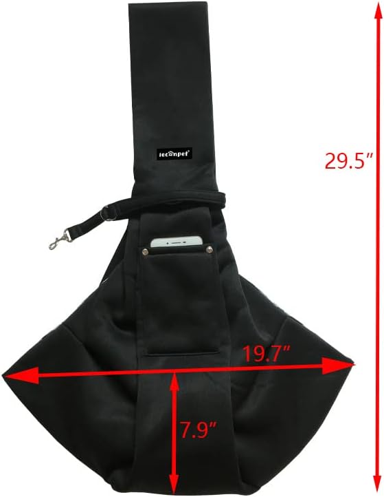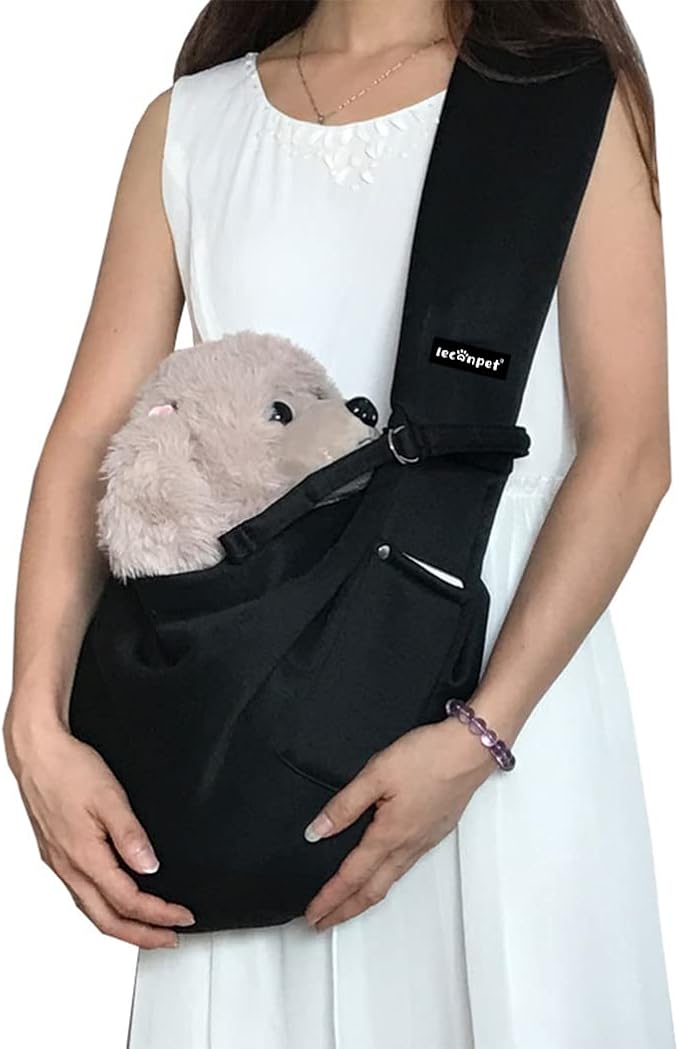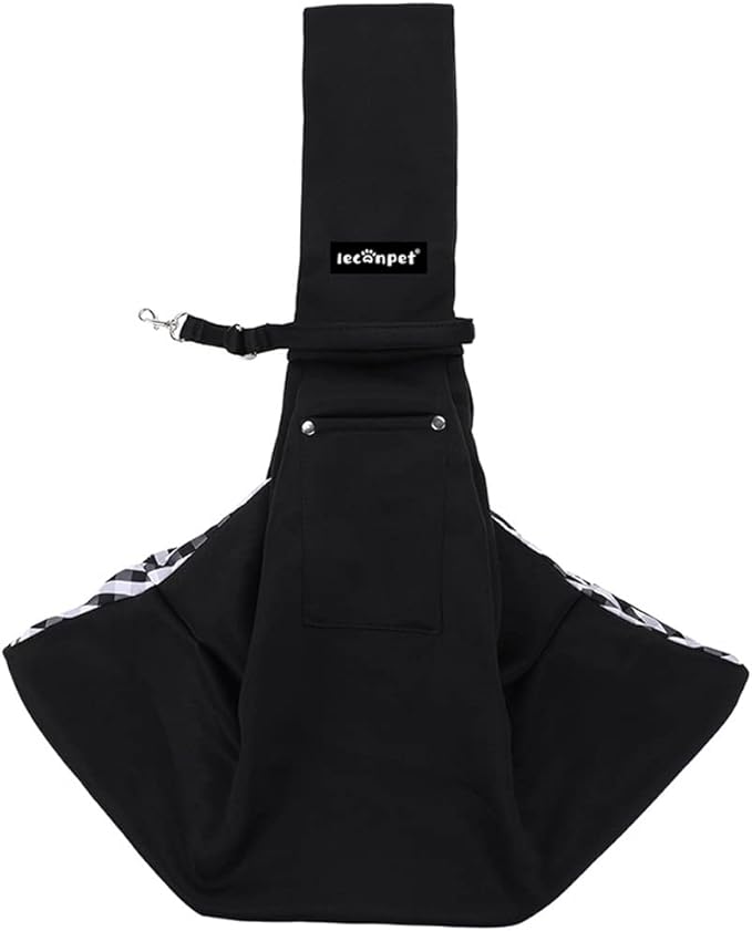Leconpet Dog Sling Carrier Shoulder Bag for Pets with Mobile Phone Pocket Safety Buckle Security Lock, Suitable for Puppy, Small Dogs, and Cats for Outdoor Travel (Black)