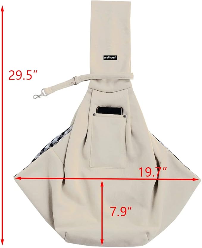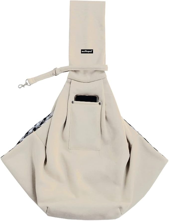 Leconpet Dog Sling Carrier Shoulder Bag for Pets with Mobile Phone Pocket Safety Buckle Security Lock, Suitable for Puppy, Small Dogs, and Cats for Outdoor Travel (Beige)