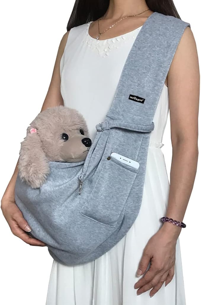 Leconpet Dog Sling Carrier Shoulder Bag for Pets with Mobile Phone Pocket Safety Buckle Security Lock, Suitable for Puppy, Small Dogs, and Cats for Outdoor Travel (Grey)