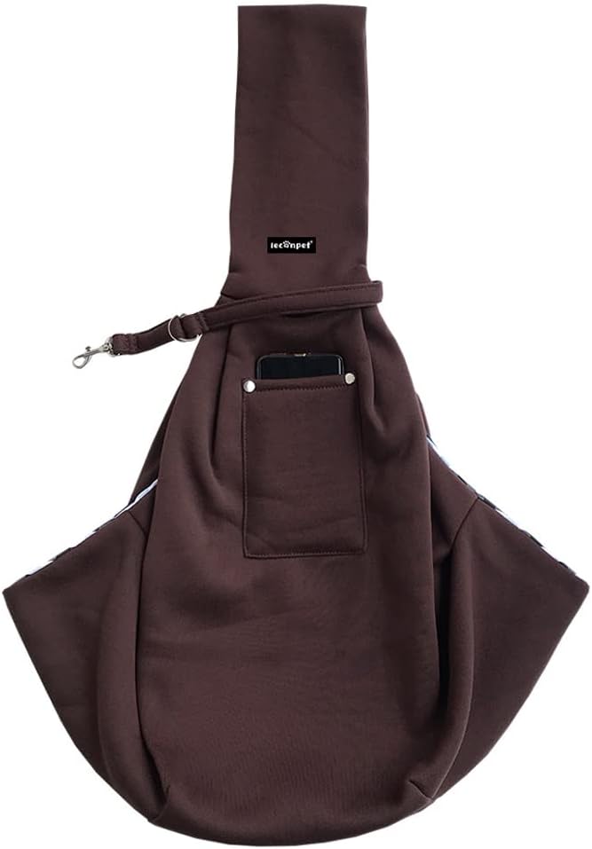 Leconpet Dog Sling Carrier Shoulder Bag for Pets with Mobile Phone Pocket Safety Buckle Security Lock, Suitable for Puppy, Small Dogs, and Cats for Outdoor Travel (Brown)