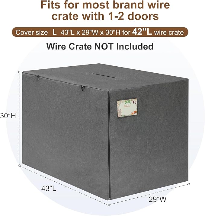 - Heavy Duty Material: Dog crate cover is made of windproof and sun resistant 600D polyester with water-resistant coating, which provides all type of protections. Package included 1 x crate cover and 1 x 6" postcard (wire crate not included)