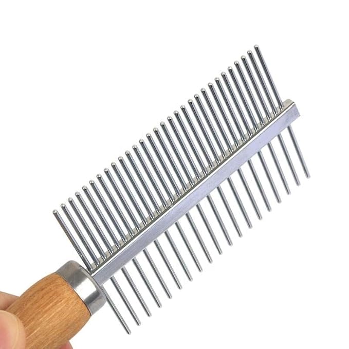 TopMed ETS Set of 3 Stainless Steel Pet Hair Comb, Wooden Handle of Bamboo Proven Grooming Tools Kit for Dogs Cats and Other Animals