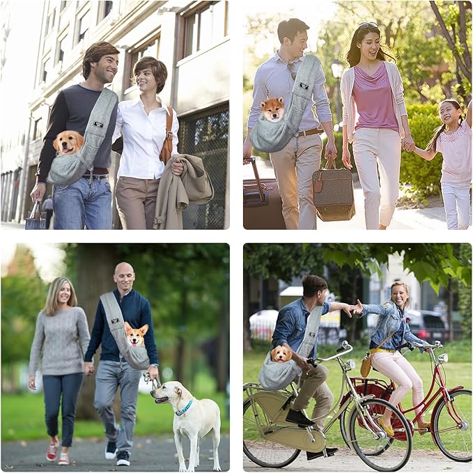 Dog and Cat Sling Carrier, Dog Carrier with Adjustable Opening Strap, Travel Bag for Small Dogs and Cats, Outdoor Travel Sling Carriers (Grey)