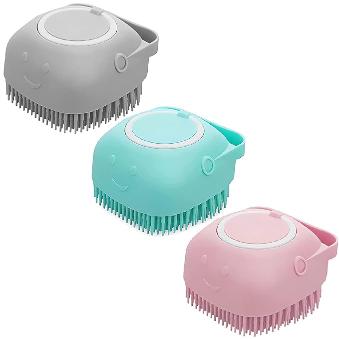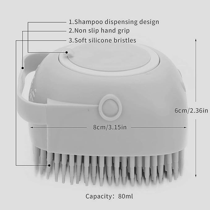 NICESHOP Dog Cat Bath Brush Comb Silicone Rubber Dog Grooming Brush Silicone Puppy Massage Brush Hair Fur Grooming Cleaning Brush Soft Shampoo Dispenser (GRAY)