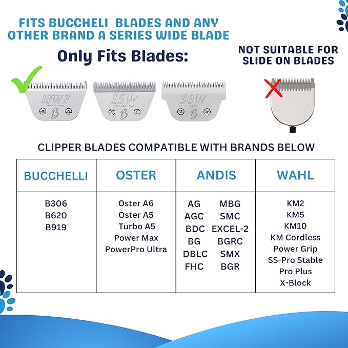 - DIVERSE COMPATIBILITY: The pet clipper comb attachment guard is compatible with Bucchelli pet hair clippers. It also fits Andis, Conair, Wahl, Laube, Thrive, or other A5 type pet grooming clippers. The comb replacement is ideal for pet hair barbers/stylists.