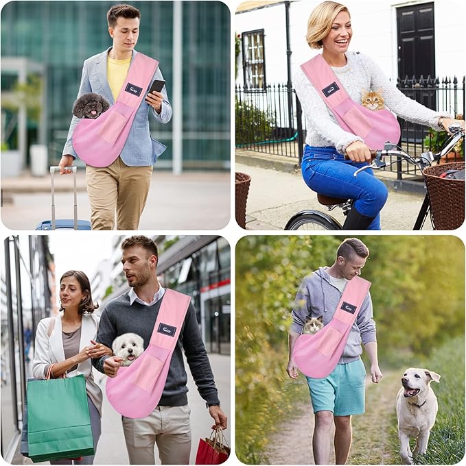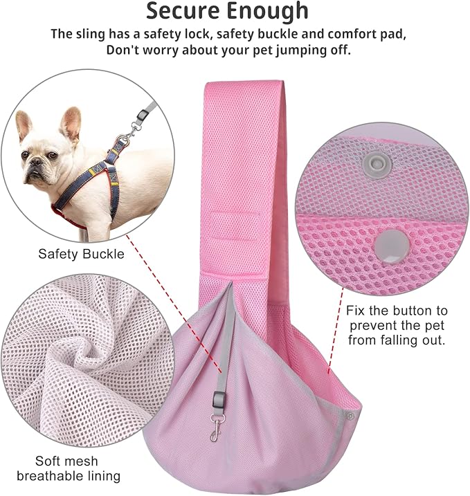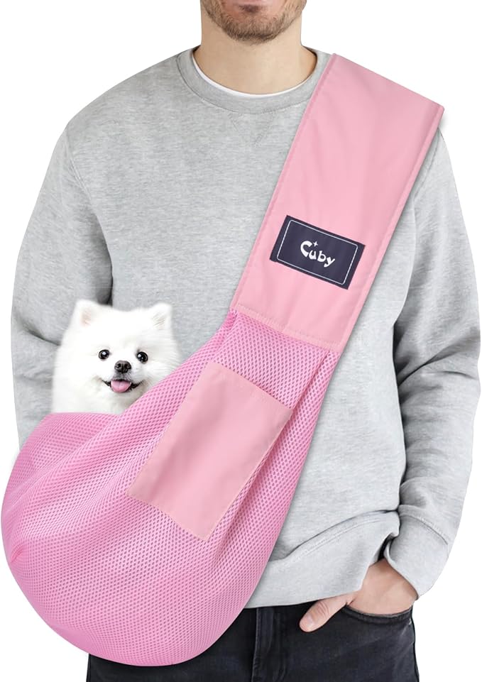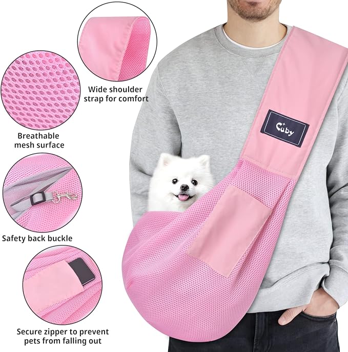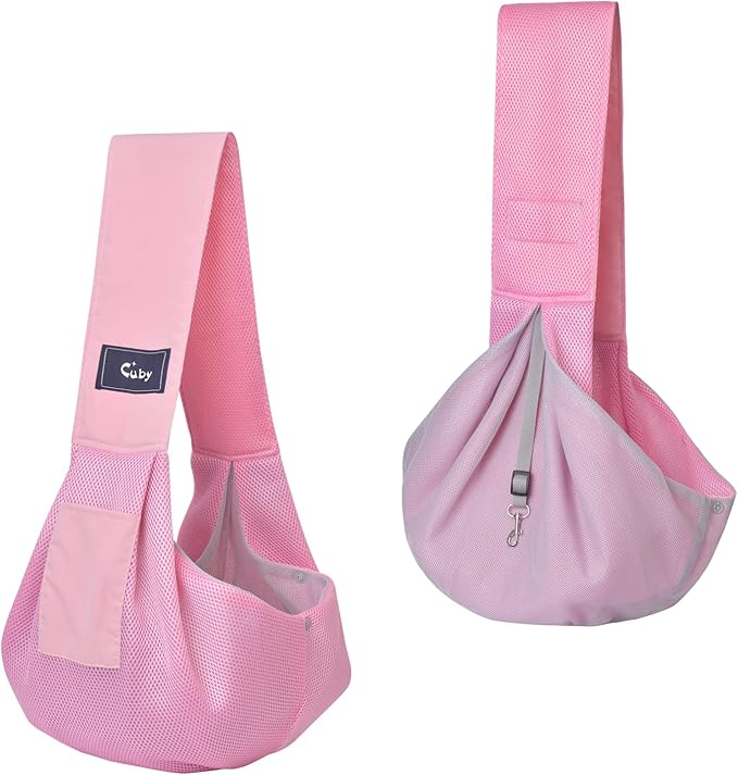 CUBY Dog and Cat Sling Carrier, Hands Free Reversible Pet Papoose Bag, Soft Pouch Adjustable, Suitable for Puppy Cats for Outdoor Travel (Pink Mesh, one Size mesh)