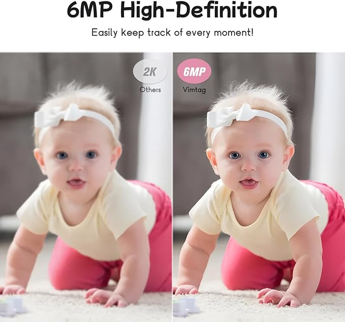 VIMTAG Baby Camera, 3.5K/6MP 360° Pan/Tilt Indoor 2.4G WiFi Camera for Pet/Dog/Home Security with Phone App/2-Way Audio/Night Vision, Human/Sound/Motion Detection, Support Alexa/Up to 512G TF Card
