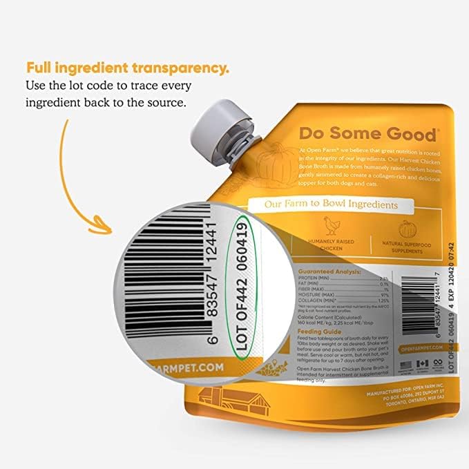 Open Farm Bone Broth, Food Topper for Both Dogs and Cats with Responsibly Sourced Meat and Superfoods Without Artificial Flavors or Preservatives, 72oz (6 Pack Harvest Chicken)