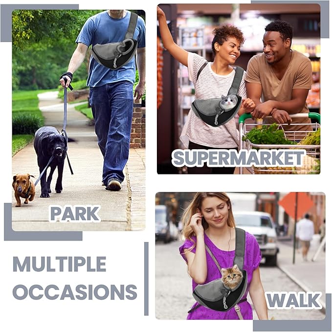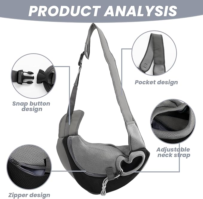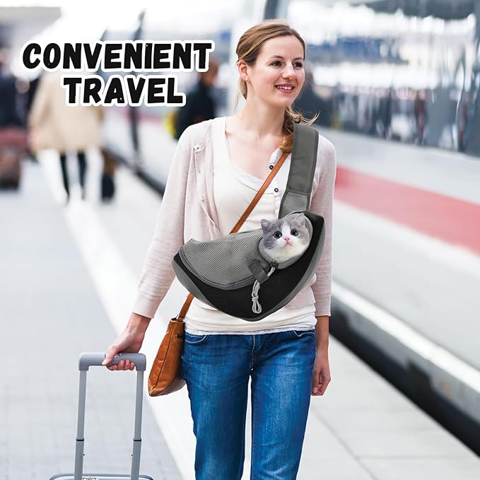 Small Dog Sling Carrier, Mesh Adjustable Pet Sling Carrier Zipper Pocket Breathable Hand Free for Small Medium Dogs Cats Outdoor Travel (up to 5 pounds)