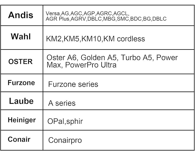 - 【Model】:Compatible with detachable blade clippers:AG, AGC, AGP, AGRC, AGCL, AGR Plus, AGRV, DBLC, MBG, SMC and Most Oster A5 and Wahl KM Series