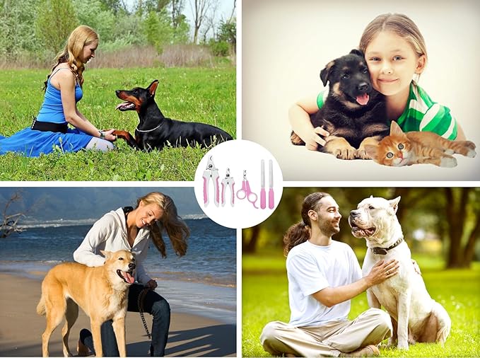 5Pcs Dogs and Cats Grooming Nail Clippers Kit Pet Claws Nail Clipper Trimmers, with Protective Guard Lock to Avoid Over Cutting, Professional Trimmers for Large and Small Cat and Dog Animal. (Pink)
