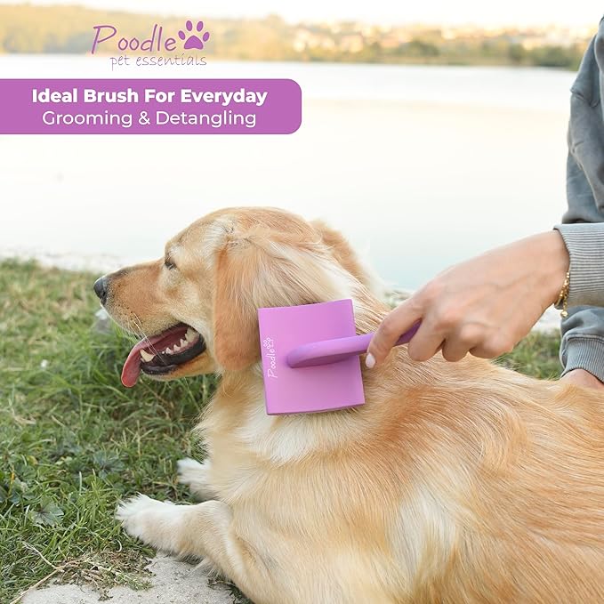 - Dog Hair Brush with Long Pins: Designed with extra long pins to effectively groom long haired breeds such as Poodles, Doodles, Goldendoodles, Bernerdoodles, Aussiedoodles, Collies, Shelties and Retrievers .
