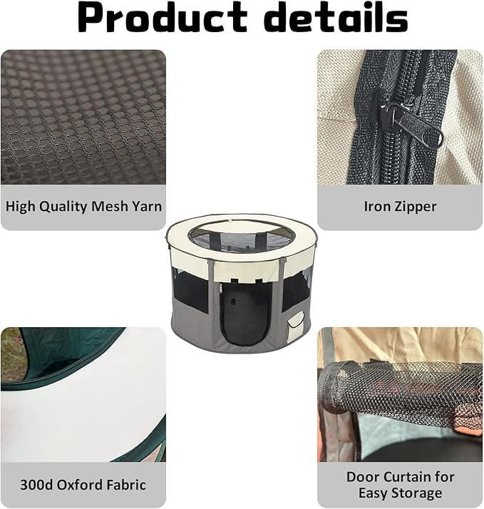 - [Multi-scene Use]The pop up playpen keeps your pets safely with you while at the park, beach, and inside or outside your home. At the same time it can also be used as a indoor pet delivery room for female cats, the size of this is enough for her to give birth in it, we recommend putting pet urine pads on the bottom before giving birth