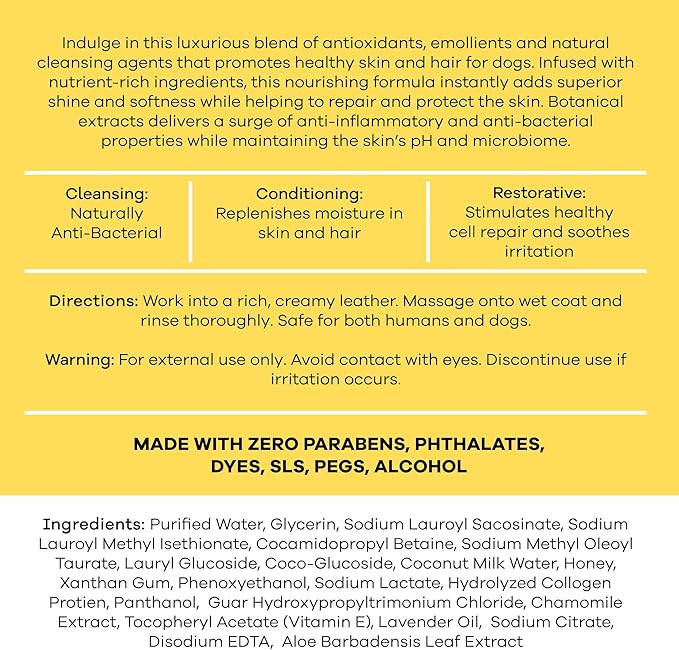 Dog Shampoo and Body Wash - 13.5 Fl Oz of Super Soft Pet Shampoo for Dogs - Made with Honey and Milk for a Healthy Skin and Coat - Made in The USA