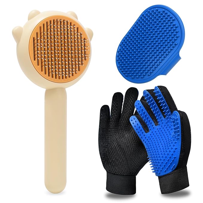 GJEASE Cat Grooming Glove Brush,Self-Cleaning Slicker Pet Brush for Short and Long Haired pets,Dog Bath Brush for Shedding and Grooming,Removes Loose Hair and Tangles,Promote Circulation