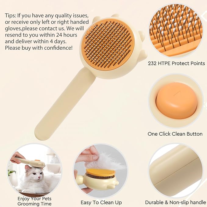 - One click Cleaning Button and Non slip Handle:You just have to Simply click the button,and the pet hair will be pushed out of the brush;The non slip rubber and ergonomic handle includes a silicone, slip resistant grip that is comfortable to use;It is more convenient and efficient to use