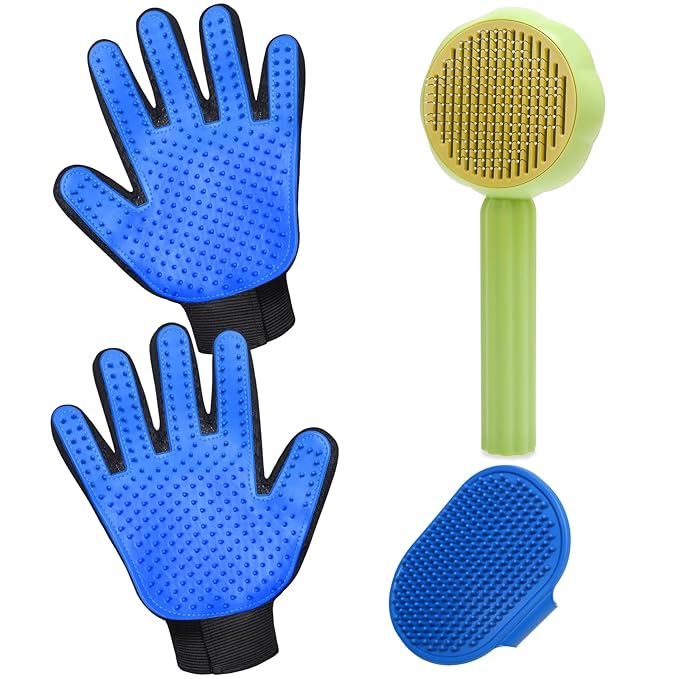 • Perfect Grooming Combination:1 pcs Dogs Cats Brush,1 pcs Dogs Cats Grooming Glove,1 pcs Dogs Cats Bath Brush;The grooming kit can be used short, medium and long, thick, thin and curly haired pets,let your pet’s coat soft and shiny