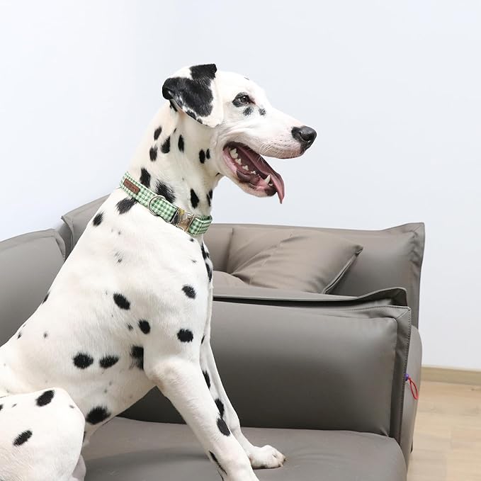 - [ATTENTION]: The cloth used to make the collar is cut randomly, so you will not be receiving the exact sample pitured. The position of the pattern may be a little different. Moreover, don't let your dog bite the collar. If having any problem of the product, please contact us. We will try our best to provide high quality pre-sale and after-sale service for you.