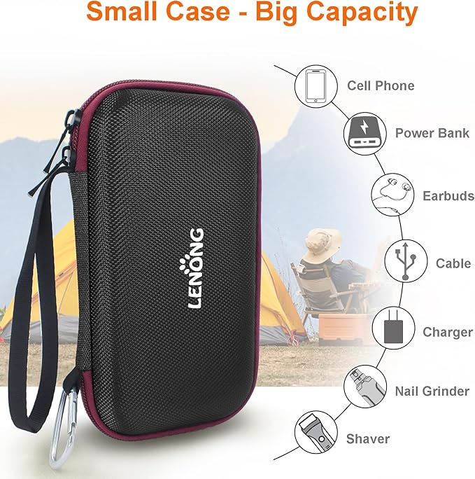 LENONG Small Hard Case Portable Protection Accessories Bag for Nail Grinders, Shaver, Cell Phone, Earphone, Power Bank, Charger, Cable, Key - Mesh Inner Pocket Universal Carrying Bag